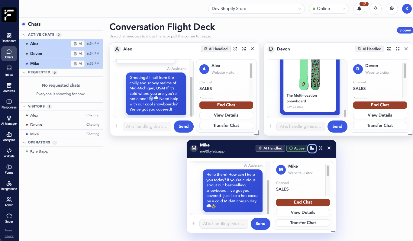 The handoff between human and AI is seamless and configurable per conversation type, operator preference, or workflow rule.