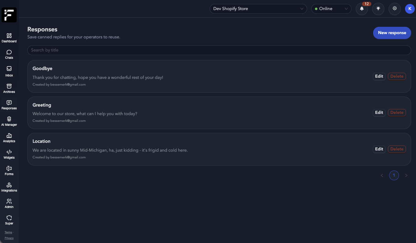 - analytics dashboard tracking conversation volume, AI usage, and resolution rates
